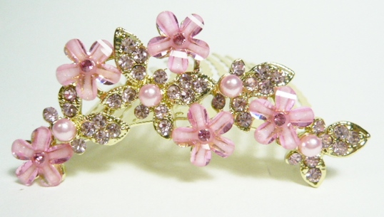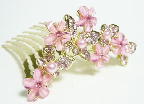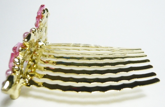 ラインストーン お花と蝶 ハーフアップ夜会巻きコーム ピンク