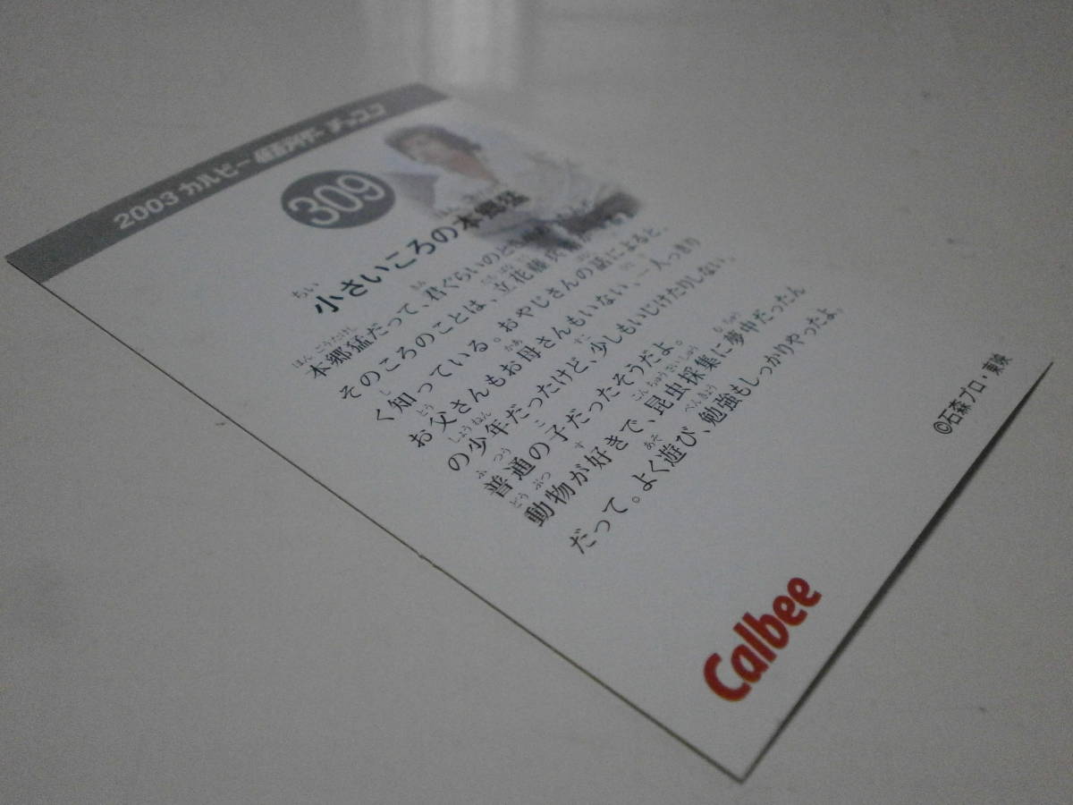 新品未使用 2003 Calbee カルビー 仮面ライダー チップス カード 309 小さいころの本郷猛 トレーディングカード トレカ 石森プロ 特撮 東映