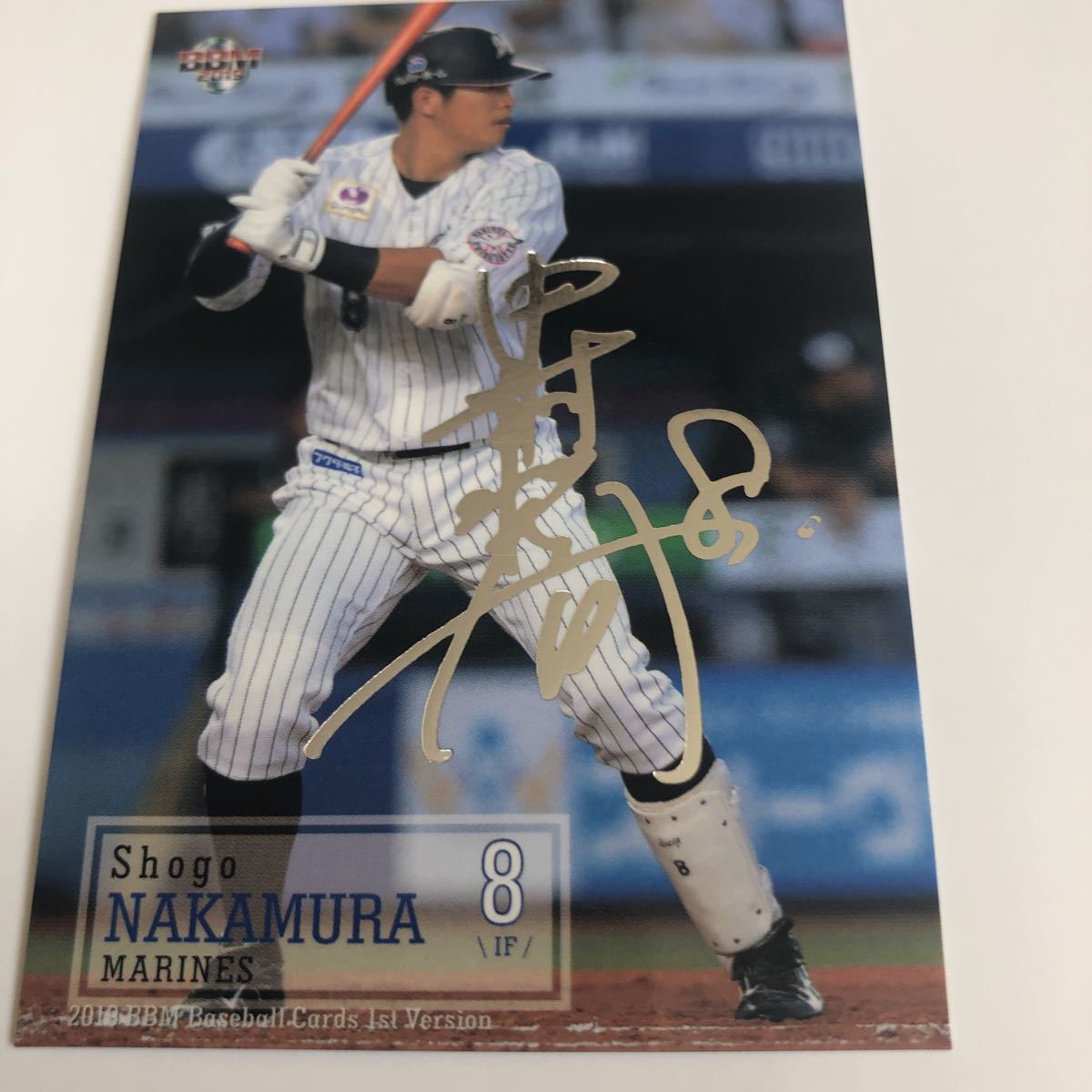 即決 2019BBM1st銀箔サインカード 千葉ロッテ8中村奨吾