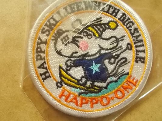 80s スキー 八方尾根 ウシうし牛キャラクター HAPPO ONE 刺繍ワッペン/白馬 スキー場 昭和レトロ雑貨ツアー アップリケ旅行パッチ v114