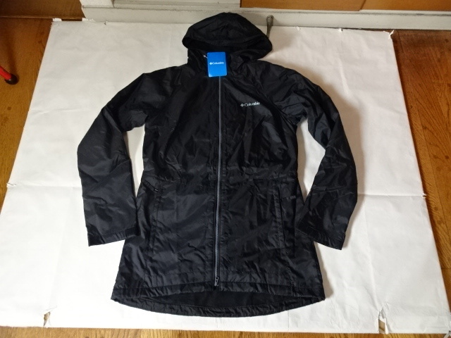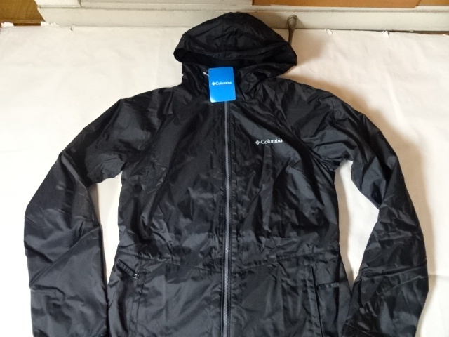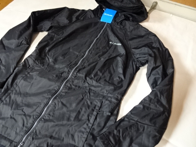 USA購入 コロンビア【Columbia】製 シンプルなデザイン 着丈少し長め フード付 ナイロンジャケットUS Sサイズ ブラック 新品未使用