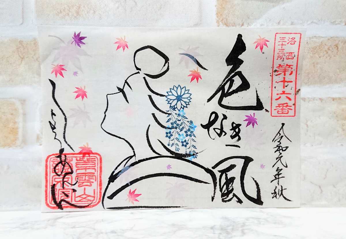 季節にごとに変わる絵などが人気の一つ。うしろ姿の舞妓さんや兎、「無上尊」のご朱印ではお地蔵さんなどバリエーション豊かなラストがひとつひとつ心込めて書かれています。