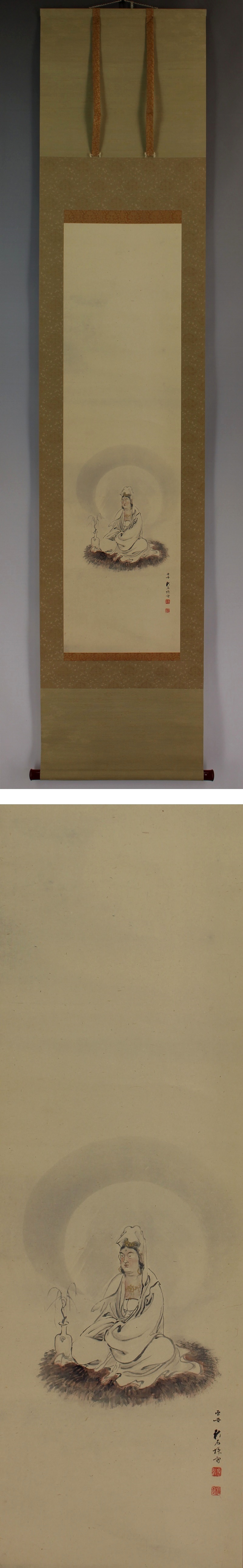 | №2007119【真作】奥谷秋石【観音大士図】◆紙本◆共箱◆二重箱◆掛軸 | |