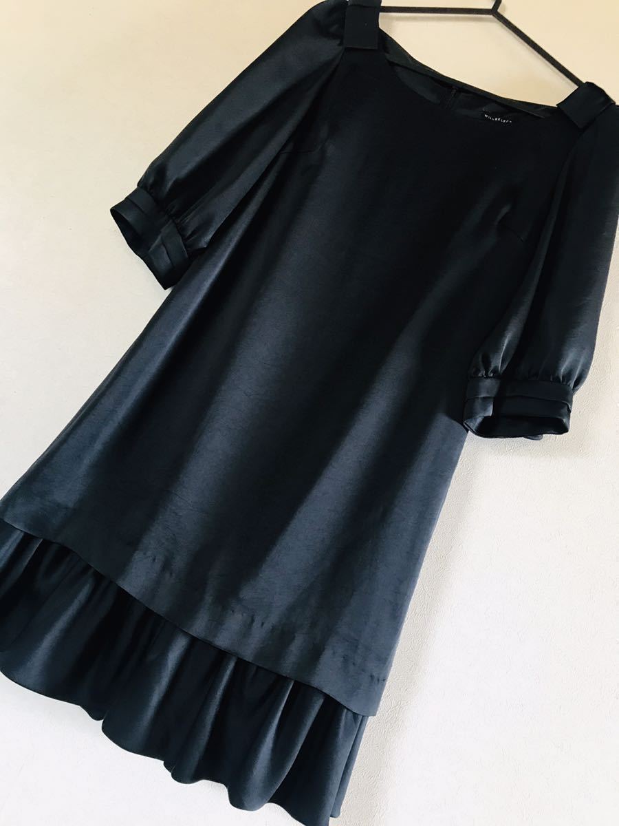 【美品】☆WILLSELECTION ウィルセレクション☆上品可愛いワンピース リボンフリル 黒 レディース ブラック入学式結婚式 日本製/ユニクロGU