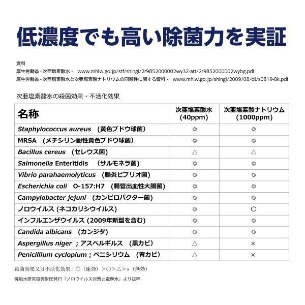●除菌成分の濃度が分解されるため高温や直射日光を避けて保管して下さい。