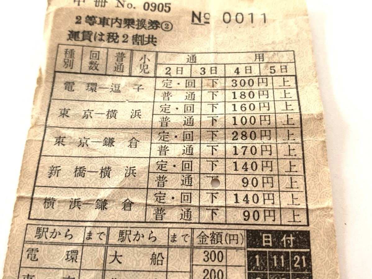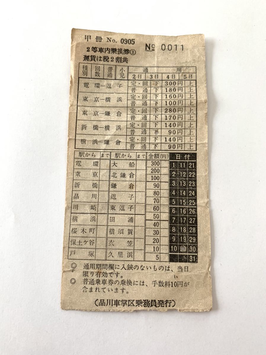 こちらは甲冊 No.0905 2等車内乗換券 品川車掌区乗務員発行 見本です。