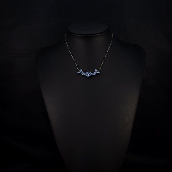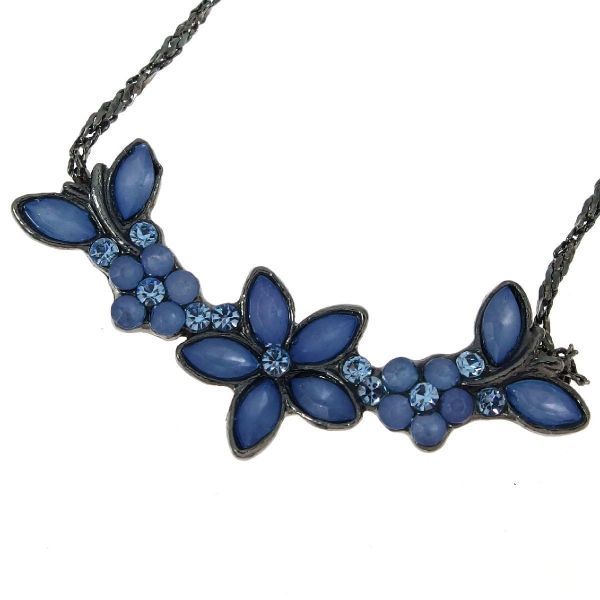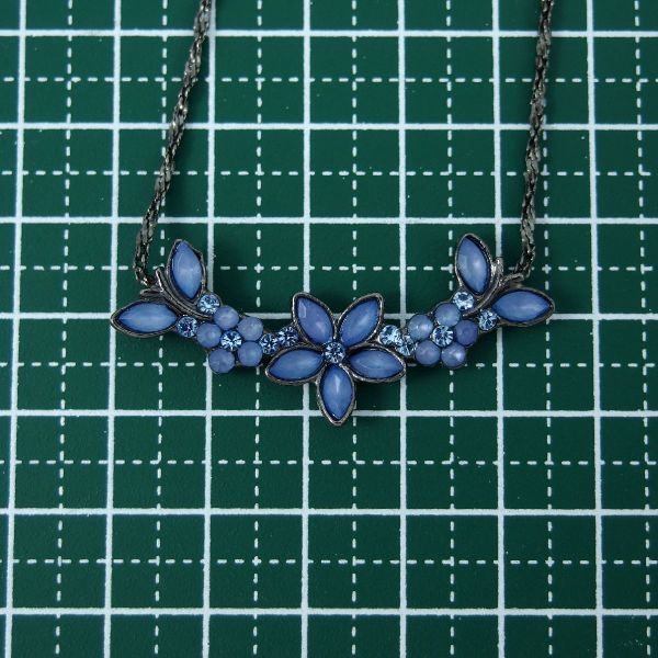 A3207◆ 【ICING】◆ 青いラインストーンで飾られたフラワーモチーフのトップのネックレス ◆ 長さ約34㎝ ◆