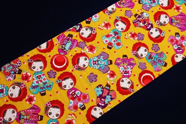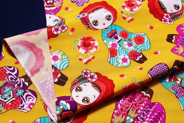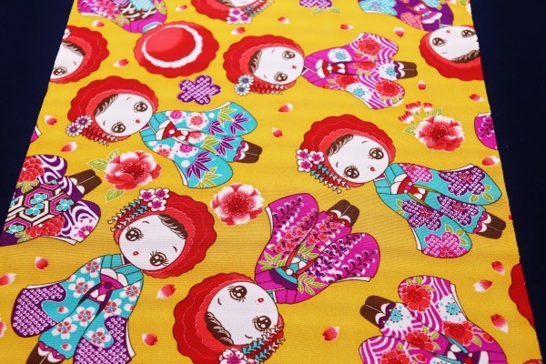 | 【京わぎれ】正絹 友禅染はぎれ お人形柄 地味目山吹色地 変り無地生地 1.25m① | ||||