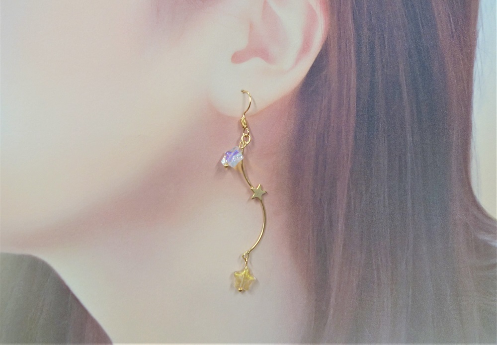 【ガラスの星ビーズ/ピアス(2)】送料無料/ハンドメイドアクセサリー