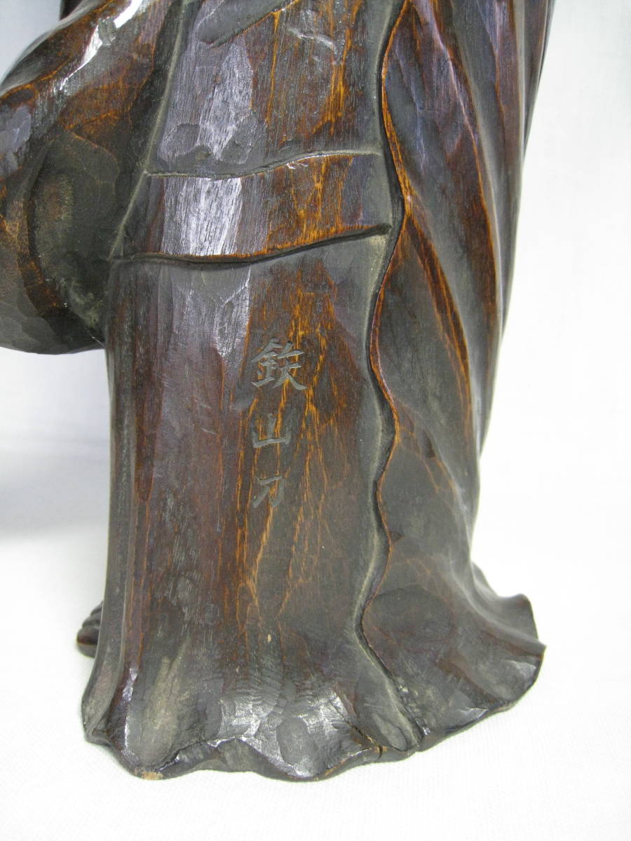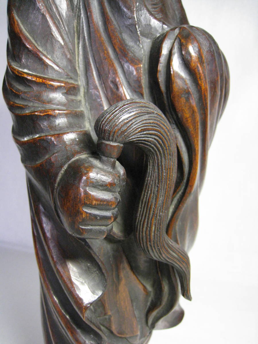 作品は一刀一刀彫られ 鑿跡も綺麗です  左手には払子を持っていますがこの部分も破損箇所もなく良い状態です
