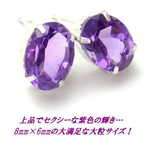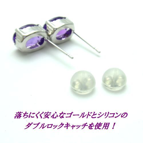 K10 アメジスト 大粒 オーバル ピアス ジュエリー 6x8 WG YG 選べるゴールド 10金 紫水晶 パワーストーン 天然石 2月誕生石 箱付き