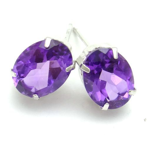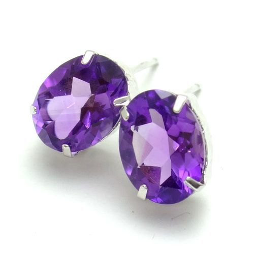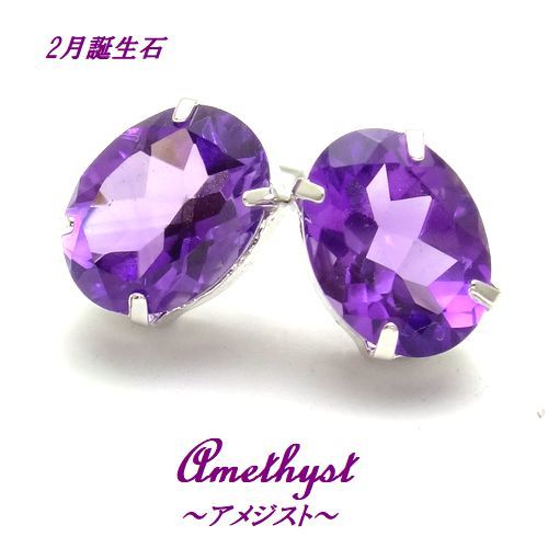 天然アメジストの楕円形オーバルのスタッドピアスです。