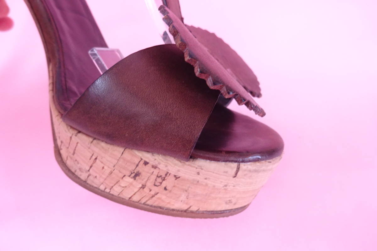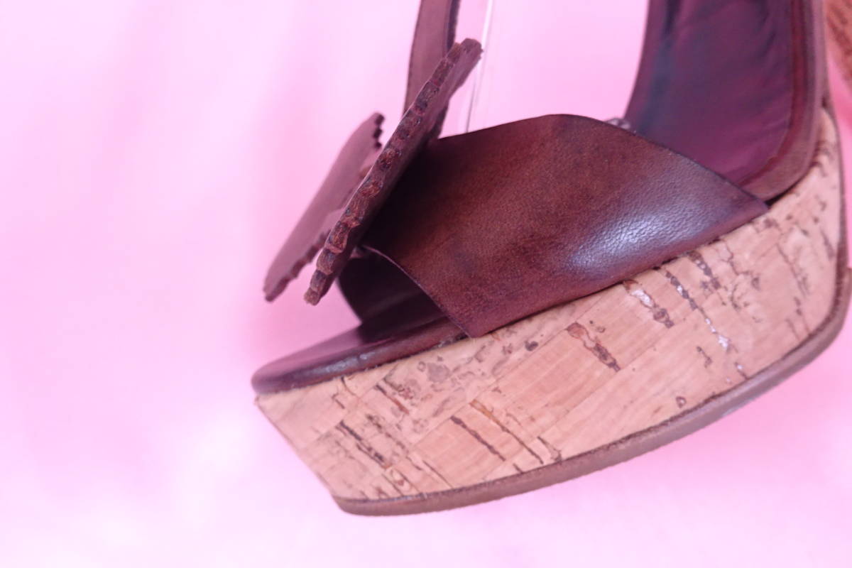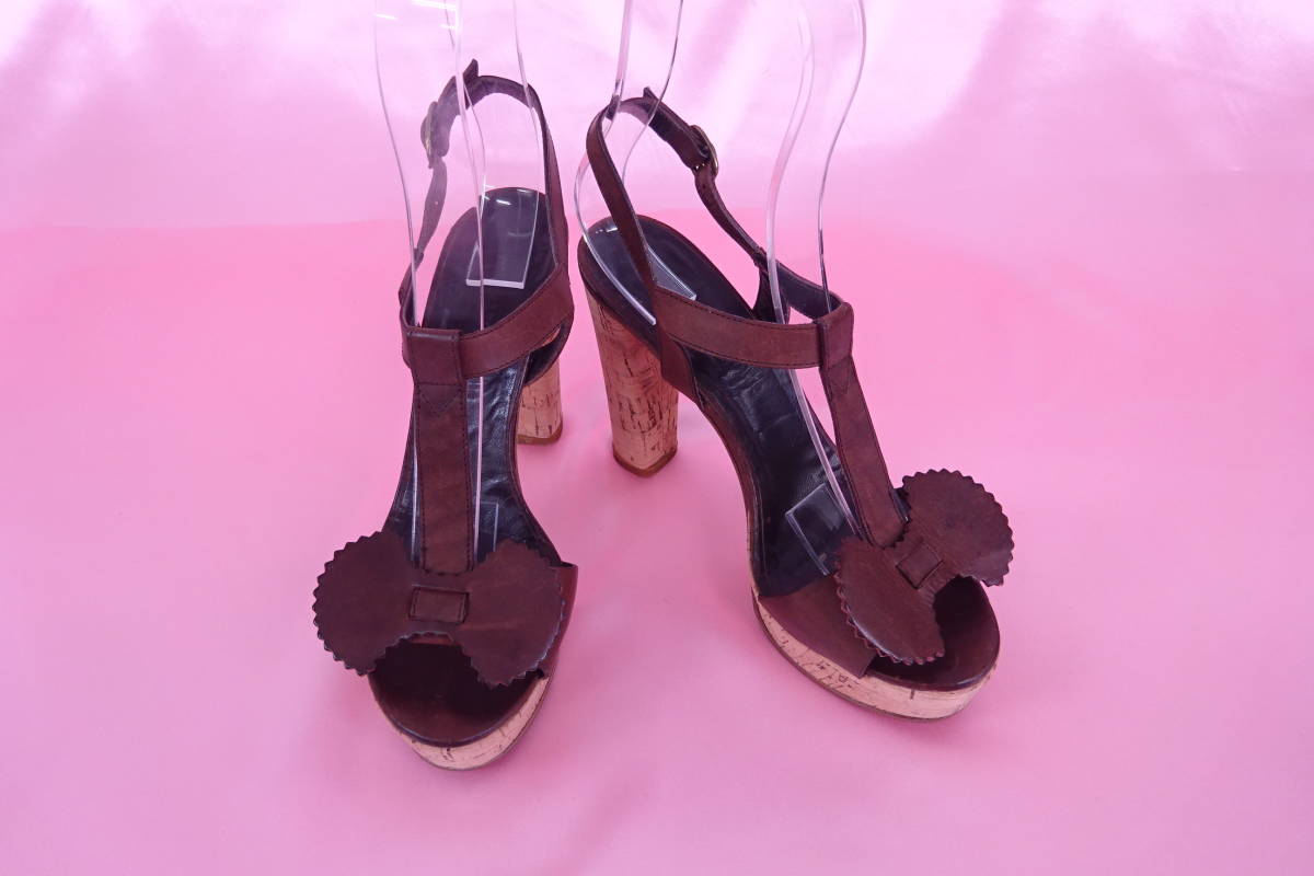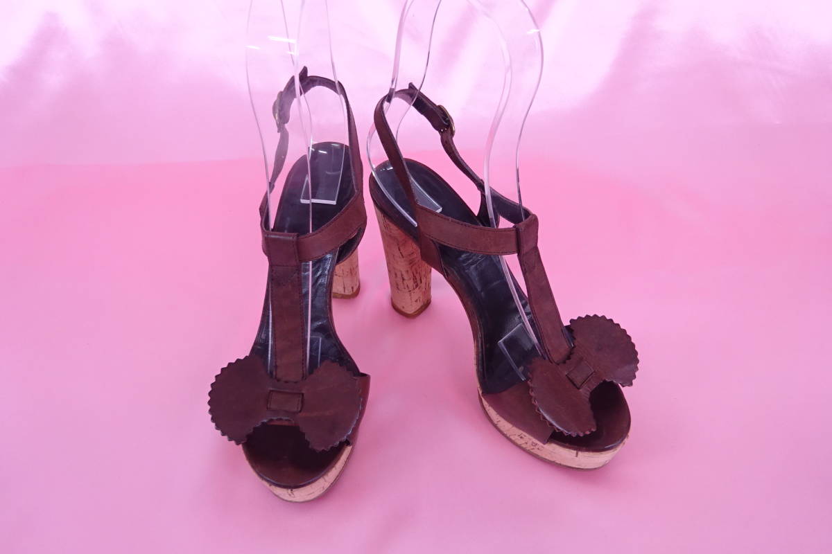TILA MARCHティラマーチ バタフライリボン Tストラップサンダル コルクヒール 36 ブラウン