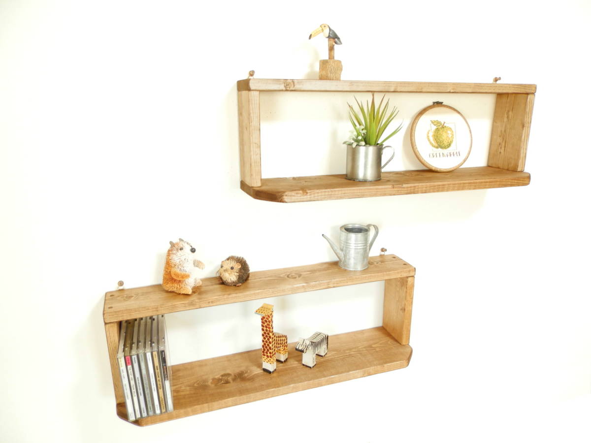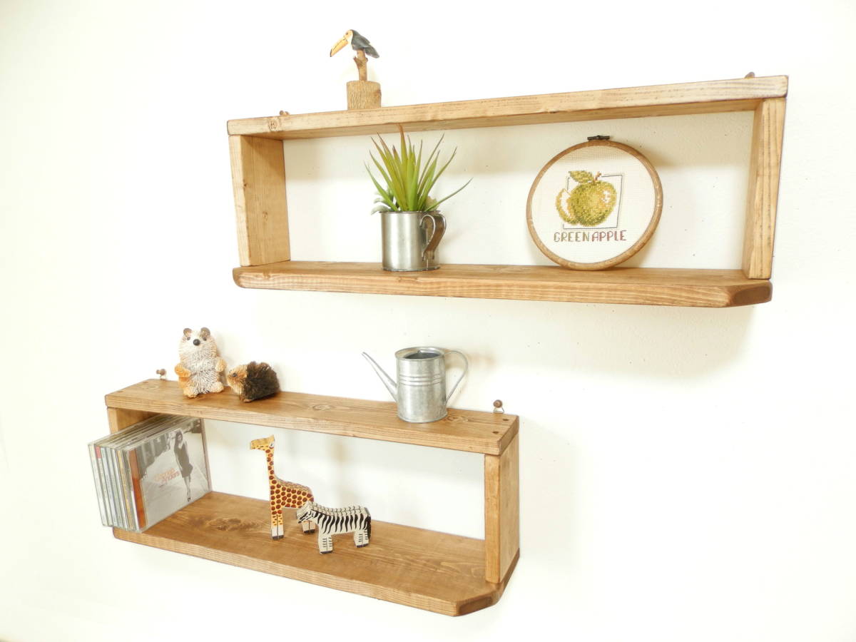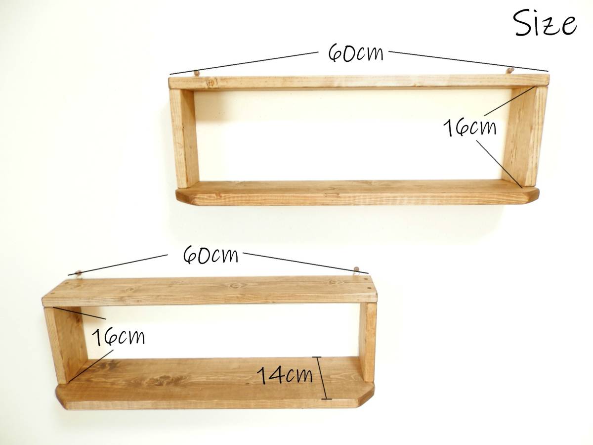 多目的飾り棚2点セット ミドルタイプです。 全ての棚に吊り金具が付いているので 簡単にネジ、押しピンなどで壁に付けるようになっています。 ラック群は上部9cm、下部奥行き14cmと スリムなのでお部屋のスペースを圧迫せず、 お手軽に雑貨や小物をディスプレイできます。 全ての棚には吊り金具が付いているため、 押しピンなどで簡単に設置可能で 賃貸契約のお部屋でもご使用頂けます。 更に据え置きで重ねて使用して頂くと CD、文庫本ラックとして使用いただけます。 サイズ、詳細 幅60cm×奥行き14cm×高さ20cm (内寸16cm) 棚本体は、ご家庭にあるプラスドライバーで、 背面の吊り金具を止めるネジを取り外し、据え置き棚としてもご使用いただけます。 ※ネジ類は全て埋め込み加工し、見えなく仕上げております。 同梱発送について。 ・他に出品されているセット商品との同梱発送や取り置きにも対応致します。 同梱発送の場合は、下記の送料表より+400円となります。 ※こちらの商品は「かんたん取引」で出品しておりますので、 複数個ご落札頂いた際は、同梱送料をお知らせいたします。 ※商品ラインナップは随時変更しておりますので 在庫が無くなり次第、再出品を行わない場合があります。 7セット以上の同梱発送をご希望の個人、業者の皆様へ。 まとまった数の商品をご希望の方は、 質問欄からその旨をお知らせ頂ければご案内させて頂きます。 |