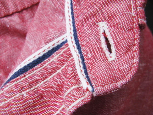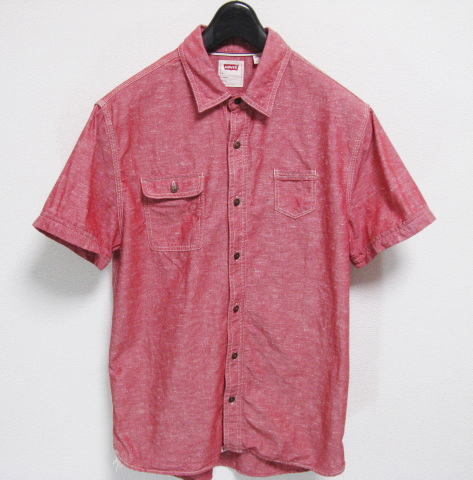 Levi's 半袖 ダンガリーシャツ S リーバイス 3本ステッチ 猫目ボタン マチ付き 赤耳