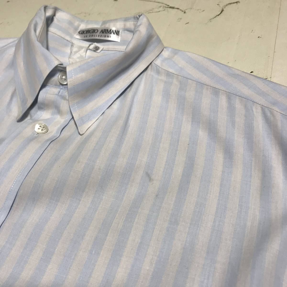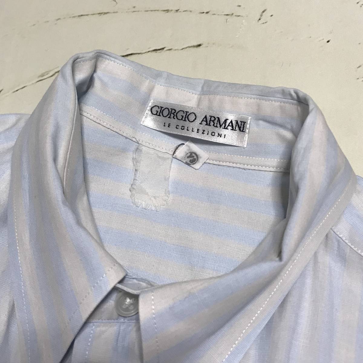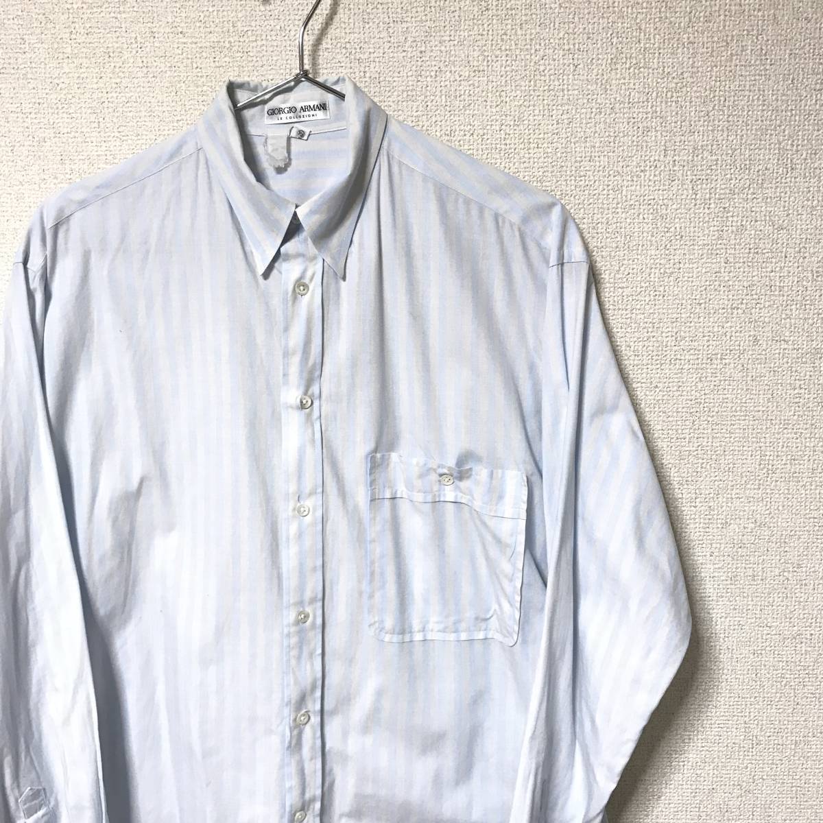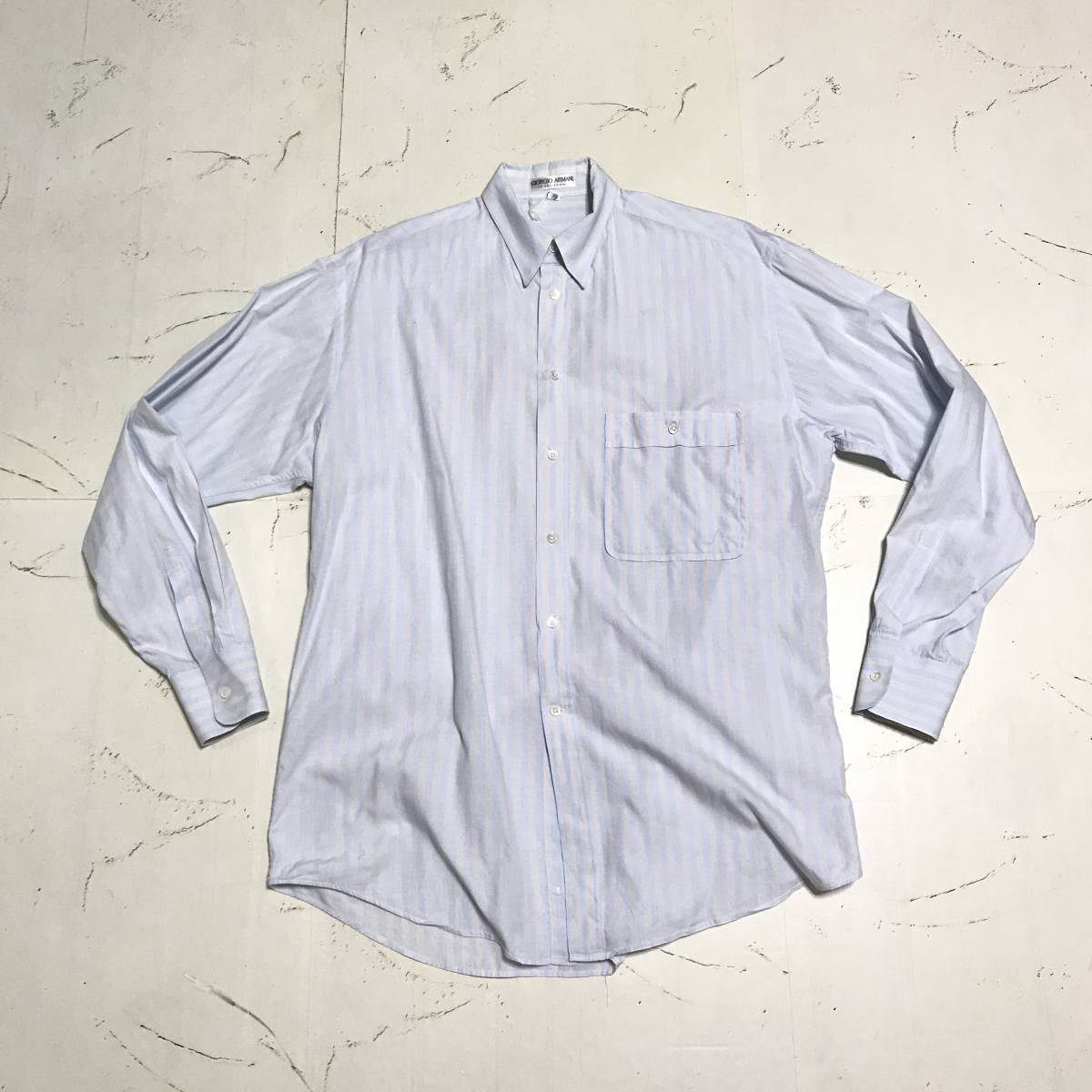★ジョルジオアルマーニ ARMANI COLLEZIONI★メンズ ストライプ柄 長袖 シャツ 水色 ライトブルー size 14 1/2 32/33