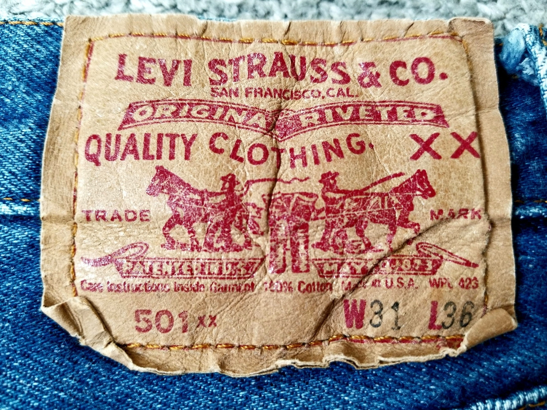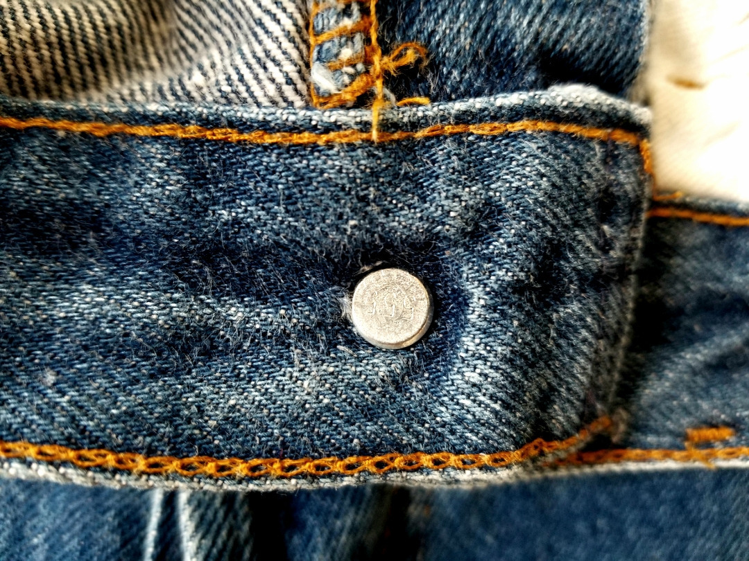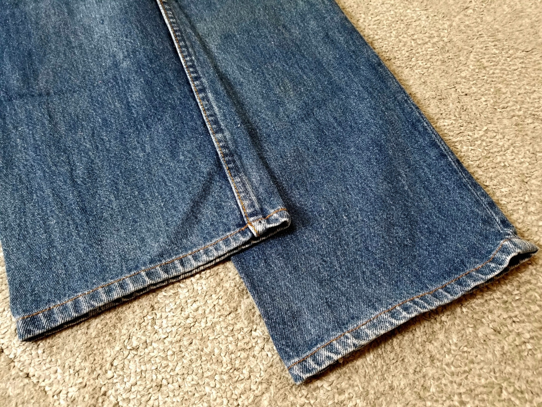 ヒゲ等良い感じに色落ちした程よい色残りの雰囲気有る一着で、脇割ロック白で、トップボタン裏555のバレンシア工場製です、サイズ表記はw31です。