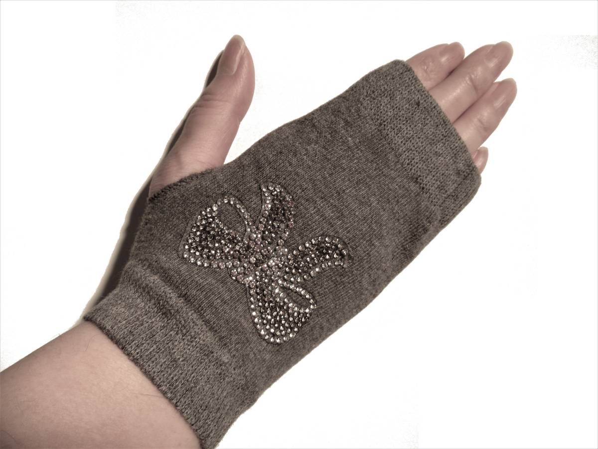 レディースファッション レディース手袋 キラキラ指切り手袋 サービス品 グレー(リボン)★