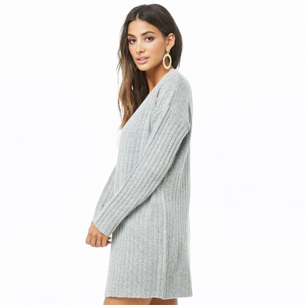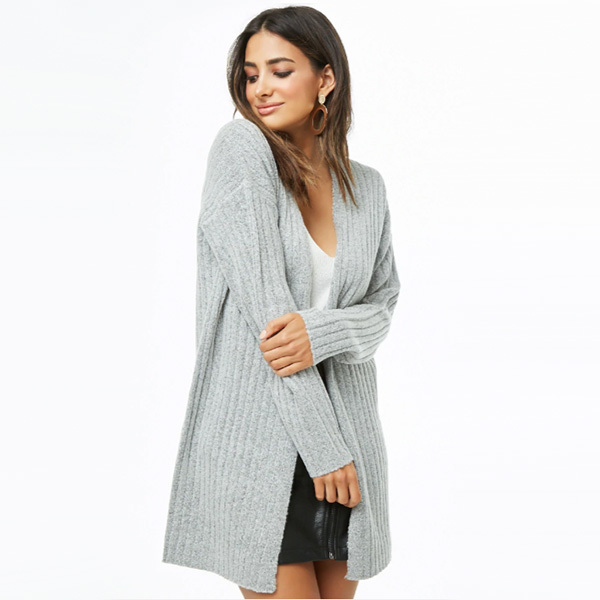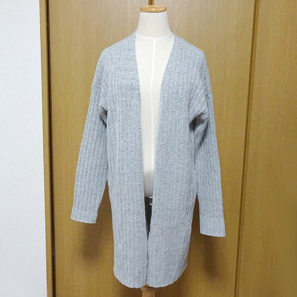 Forever21 フォーエバー21 リブニットガウンカーディガン 長袖ニット ロングカーディガン グレー S