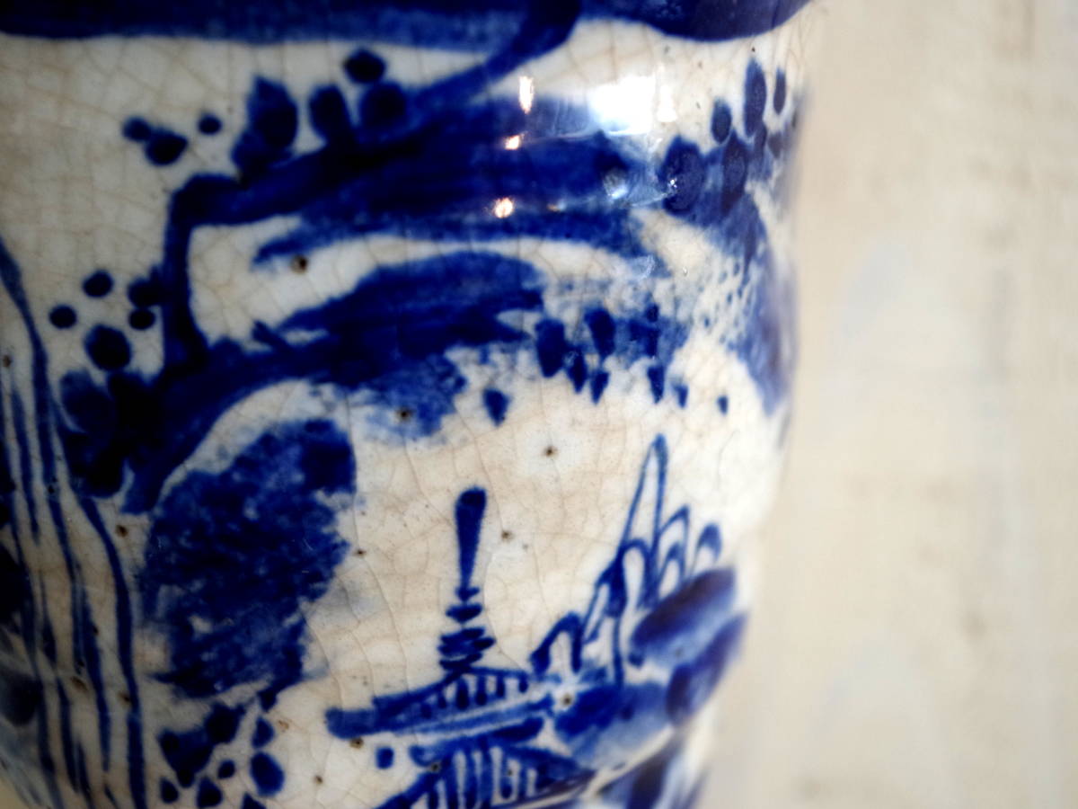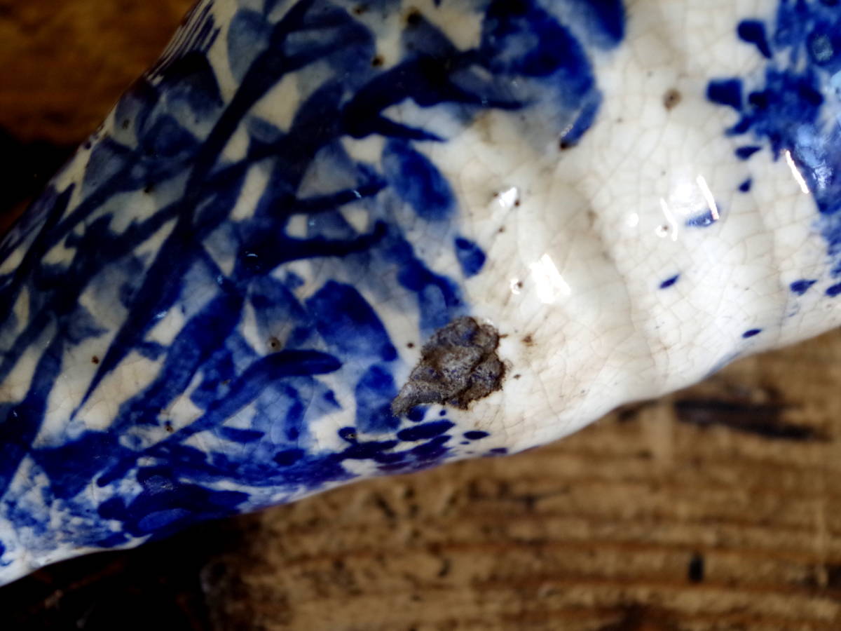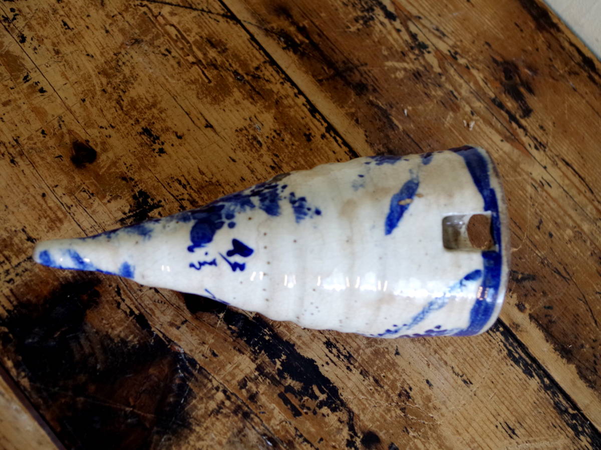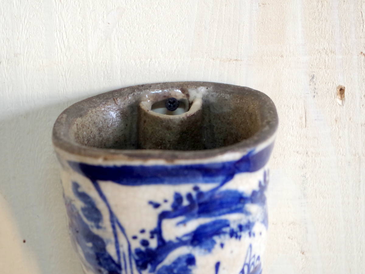 江戸期 仁清 銘 壁掛染付花生 /花器 花活け 陶器 骨董 アンティーク 一輪挿し