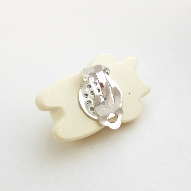 ※クリップの接着にジュエリー用接着材を用いております。接着面の耐久性を上げる為に、接着剤をわざとはみださせて接着しております。ご使用時に見える箇所ではございませんが、お気になる場合はご購入をお控えいただけますようお願いいたします。