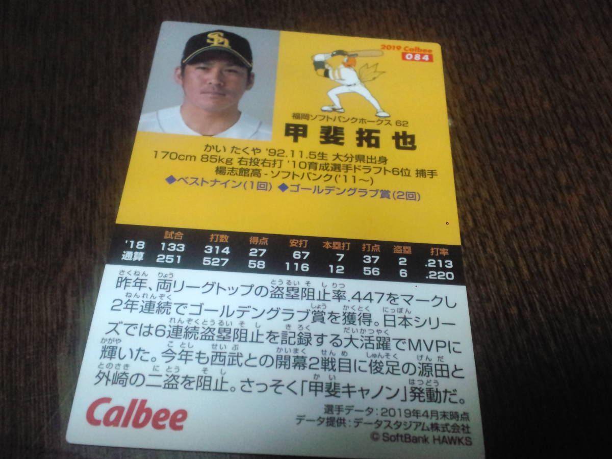 [同梱可]★甲斐拓也(福岡ソフトバンクホークス)★レギュラーカード(084)☆2019年カルビープロ野球カード第2弾