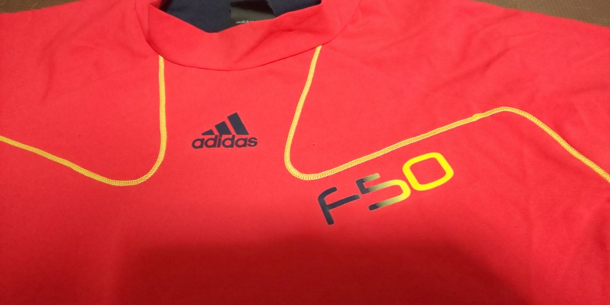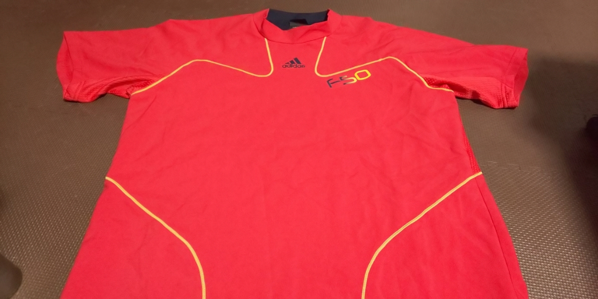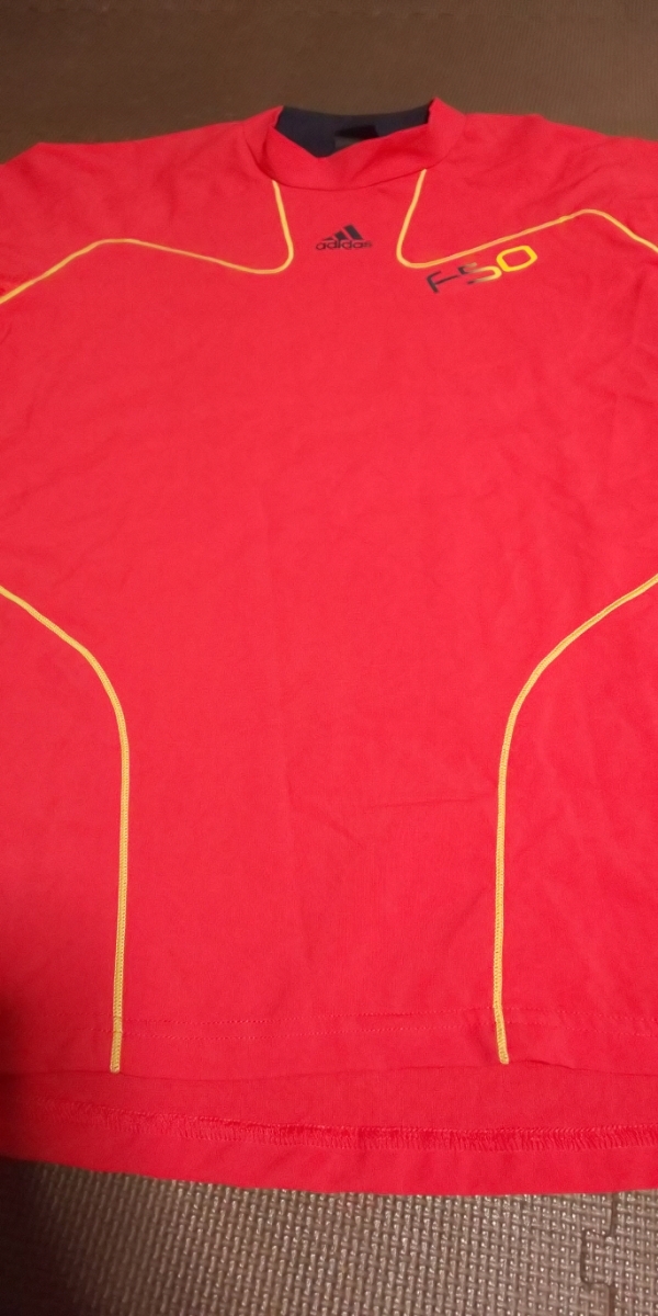 新品同様adidas赤、黒、ゴールド半袖ストレッチトップス