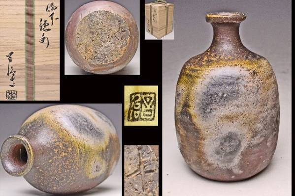 高原昌治 ★ 備前窯変徳利 ★ 共箱共布 ★ 師: 伊勢崎陽山 石井不老 ★