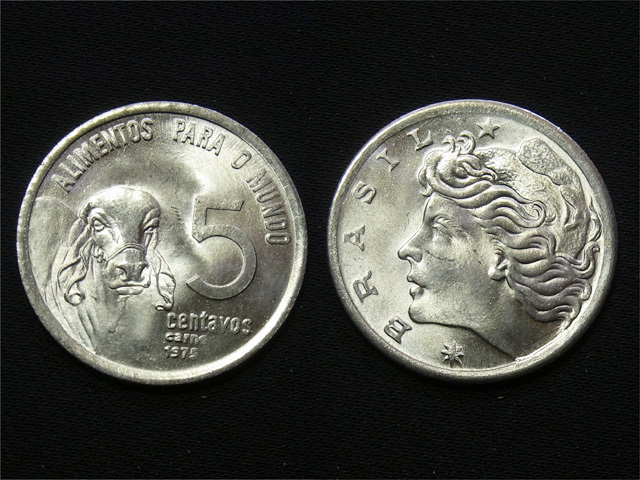【ブラジル】 5センタボス 1975年 ステンレススチール Centavos