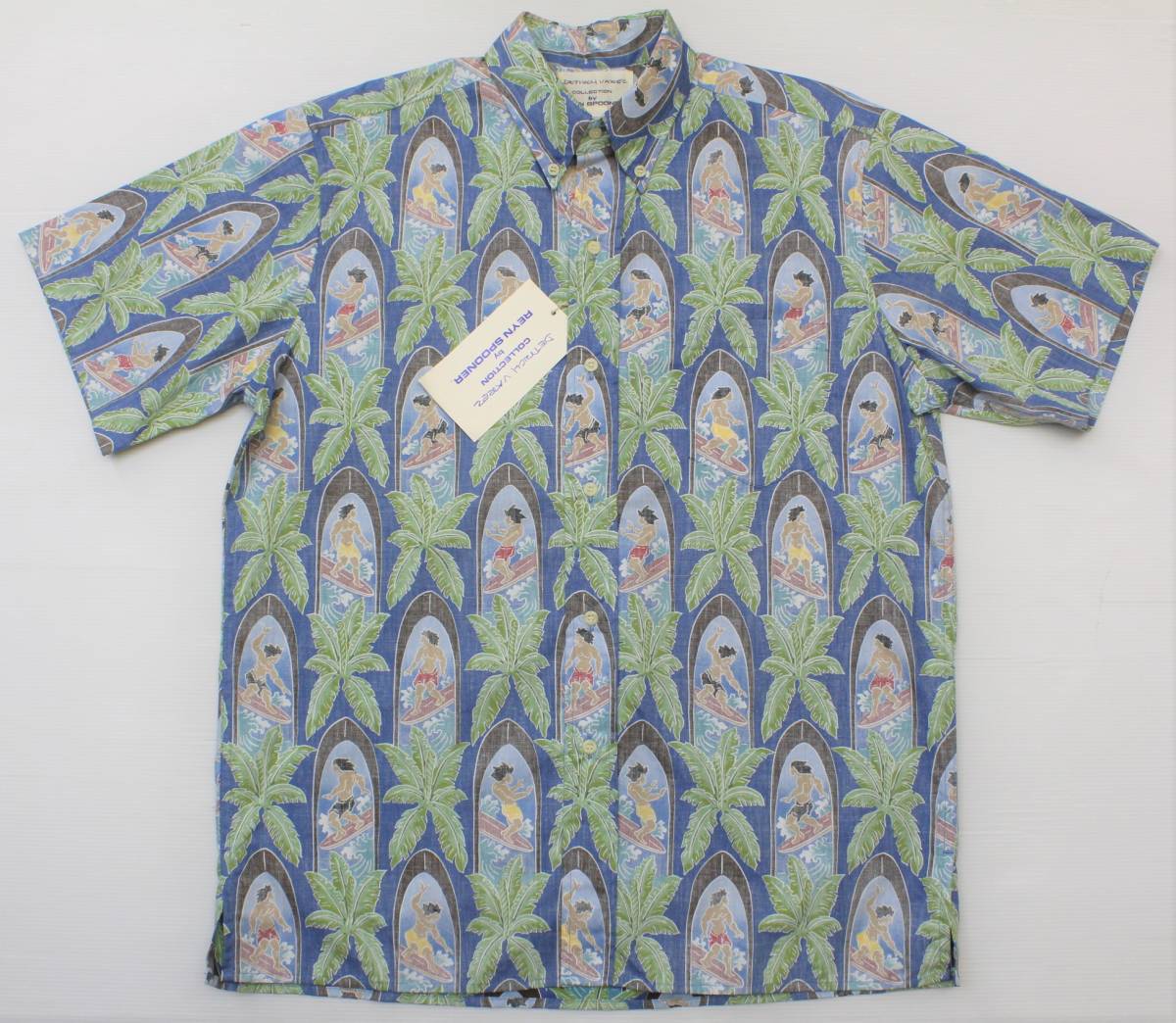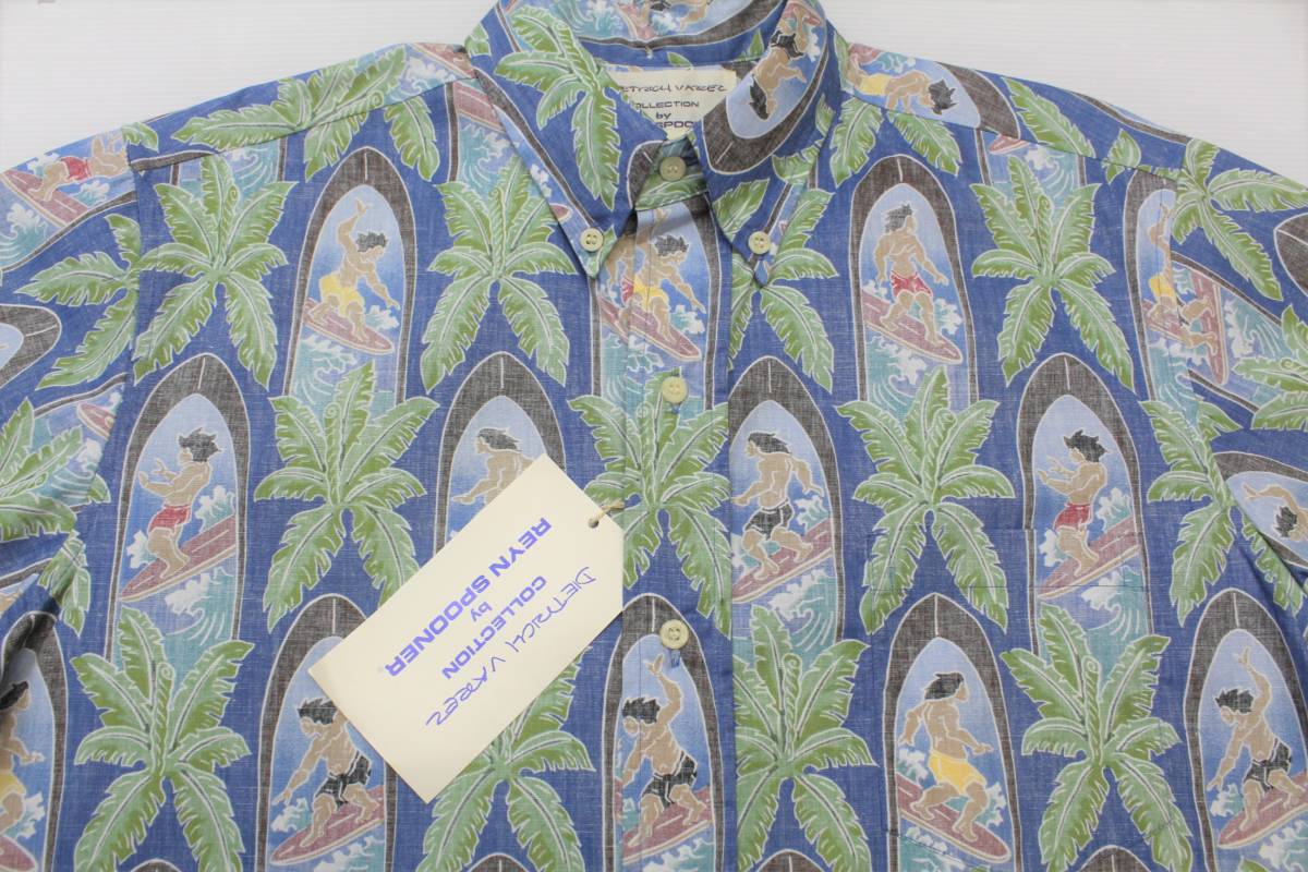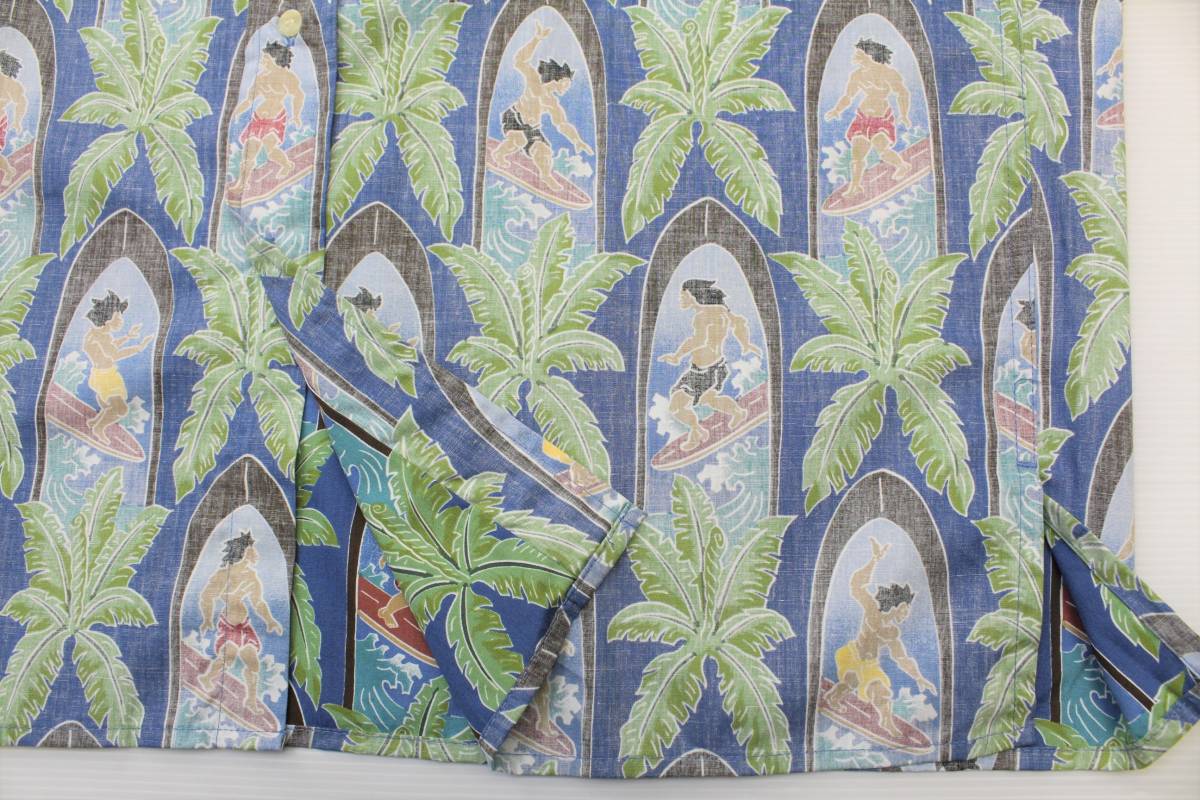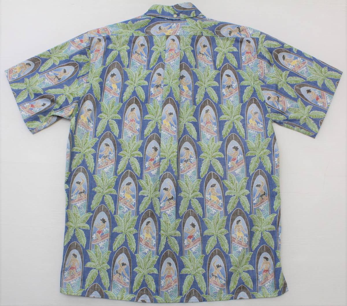 RSS17レインスプーナーSサーフィン パームツリーUSA製100%COTTONボタンダウン 半袖 アロハシャツREYN SPOONERデートリッヒ ハワイ製