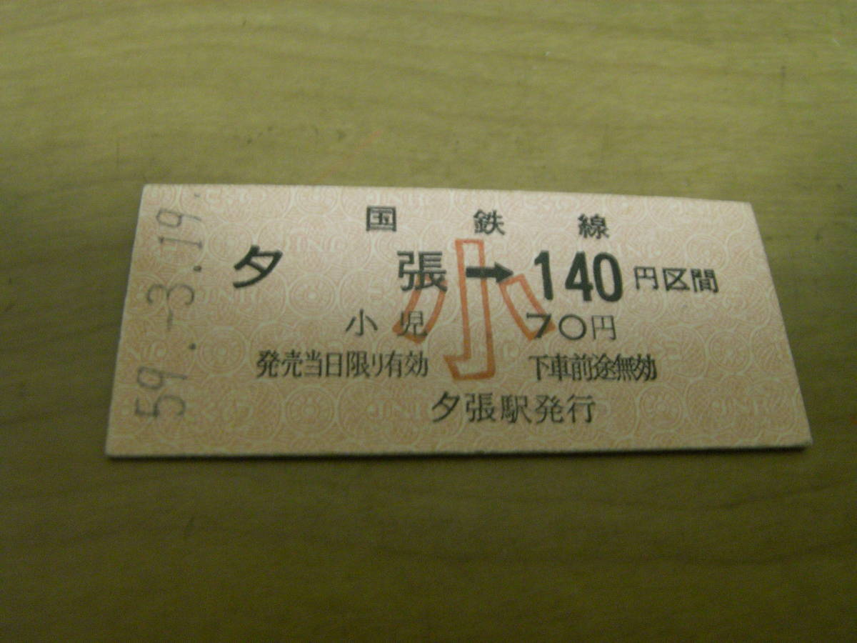 石勝線 夕張→国鉄線140円区間 小 昭和59年3月19日 夕張駅発行 国鉄
