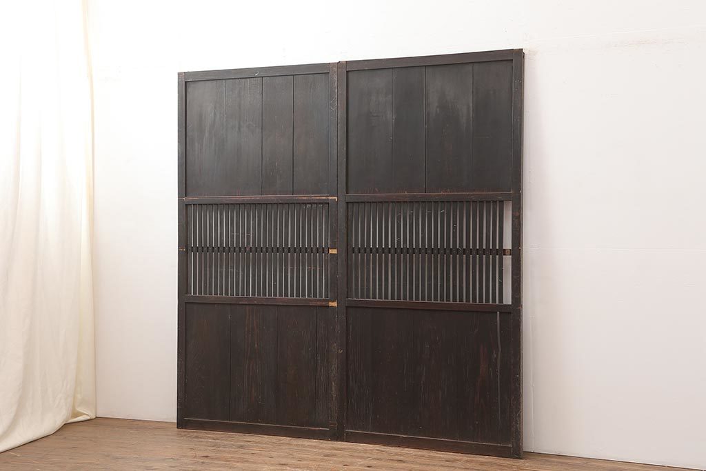 アンティーク建具 明治期 和空間や古民家スタイルにおすすめな格子帯戸2枚セット(引き戸、建具)(R-045690)