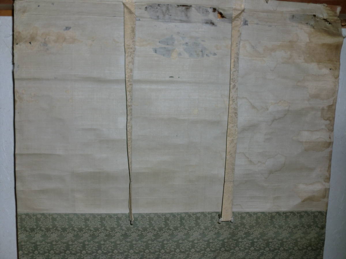 状態は、画像通りですが、古ーい作品にて 表装に 汚れ、穴等はありますが、本紙は上質のアンテイークコンデイションです。