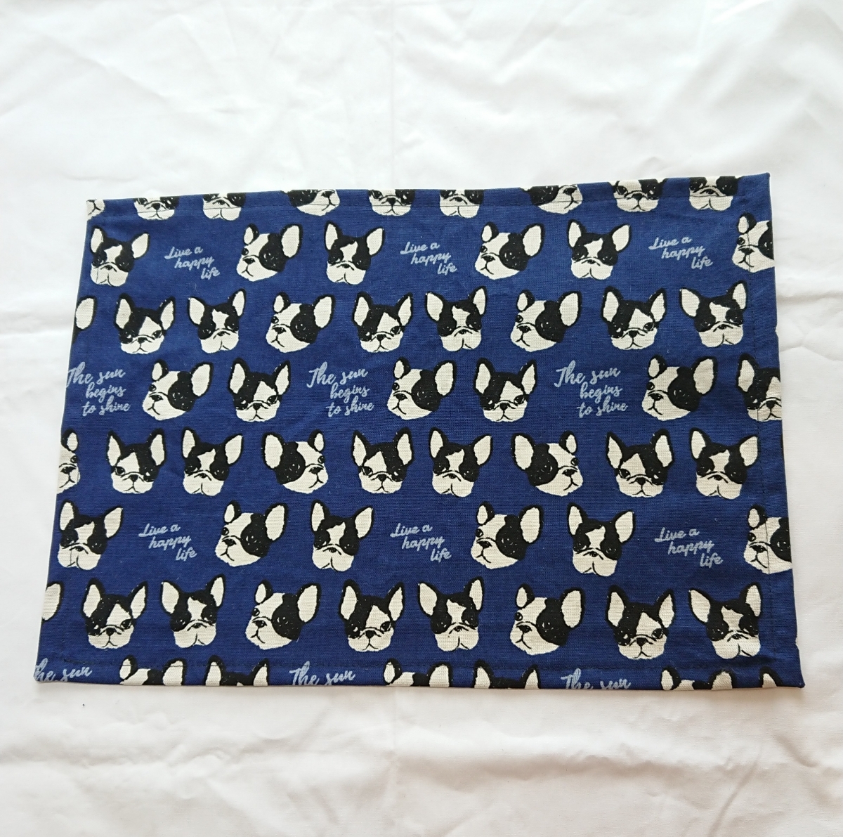 おすまし顔のフレンチブルドッグ柄が大人かわいい、ハンドメイドのランチョンマットです