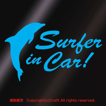 Surfer in Car! /ステッカー(イルカ/空色/ライトブルー15cm)サーファーインカー**