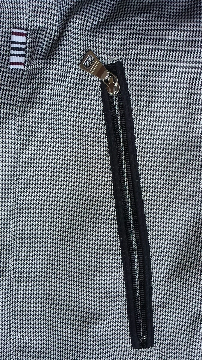サイズは2、色は白色と黒色の千鳥格子柄です。左胸部分にはブランドマークが刺繍されております。