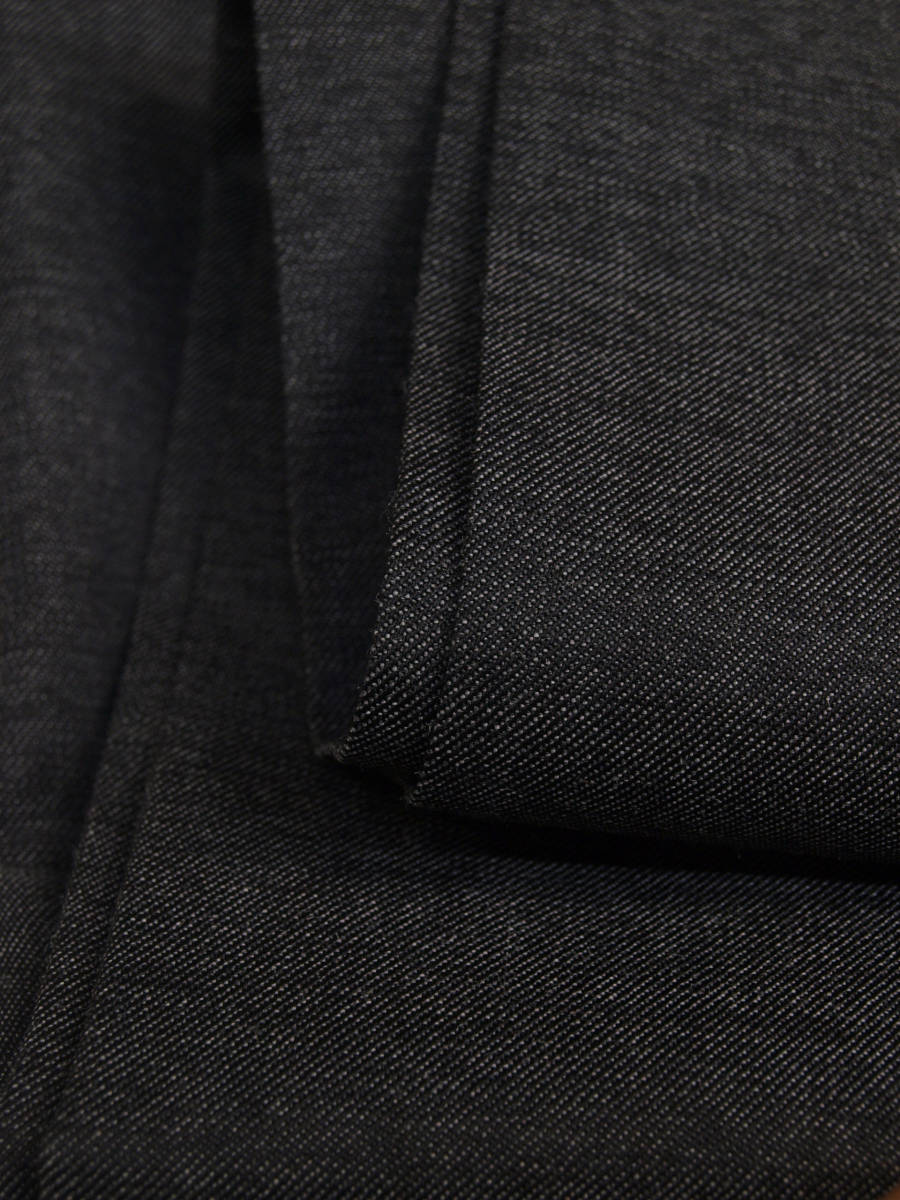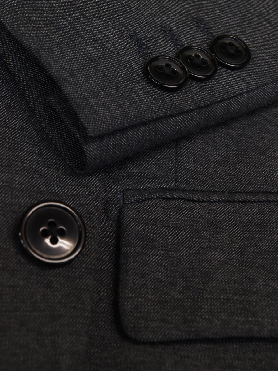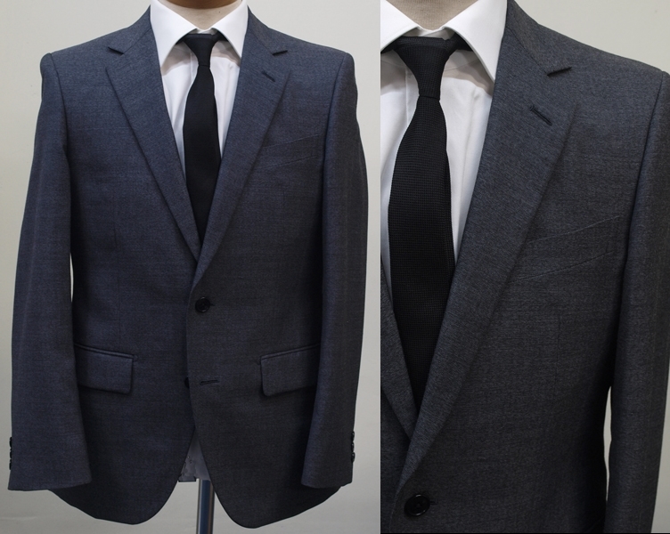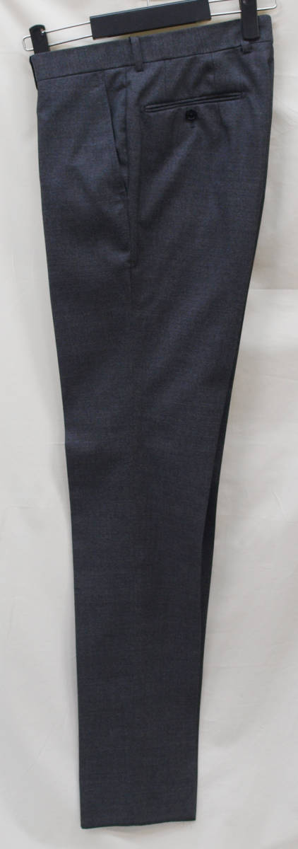 【サイズ】 A5 (AM号相当) 目安の体型 身長165cm~175cm、ウエストサイズ80cm前後 【ジャケット実寸】 肩幅43.5cm 着丈69cm 袖丈59.5cm 脇下部分49.5cm 身幅45.5cm 【パンツ実寸】 ウエスト(胴回り実寸)80cm (平置きでかるくはかると80cmでひっぱってはかると82cmです。股上がやや浅いため実寸が2cmほど大きめに作られております。) わたり幅31cm 股下から10cm下の部分27.5cm 裾幅18.3cm 脇股上23.5cm 前股上23cm 股下92cm(裾上げしていない状態/新品) 【デザイン】 すっきりとしたコンパクトな印象の細身シルエット、タイトフィット、スリム、ビジネススーツ新品、裾上げしていない状態です。 ・ジャケットはシングル2つボタンでタイトフィットスリムモデル ・パンツは股上がやや浅めで細いシルエットのノータックスリムテーパードパンツ 【仕様】 ・ジャケットはシングル2つボタン、ノッチドラペル、袖口ボタン3つ、センターベント、内ポケット4つ(小ポケット2つ含む)、背抜き(通年物) ・パンツはノータック、膝裏当て付き、脇ポケット斜め付け、後ろポケット両玉縁で左のみボタン付き、フロントはファスナーでボタン&ホック仕様/うちかけボタンあり きれいな縫製仕立てできちんとしたビジネススーツの仕様で仕上がっております。 【素材】 表地:ウール30% ポリエステル70% 裏地:胴裏/ポリエステル100% 袖裏/ポリエステル100% 真夏物ほど透け感はなく冬ものほど厚手ではないほどよくハリがある紳士スーツ用、オールシーズン向けウールブレンド素材を使用 【色】 グレー 【柄】 杢調無地 ご着用の地域によりますが真夏、真冬を除くほぼオールシーズン対応商品です。