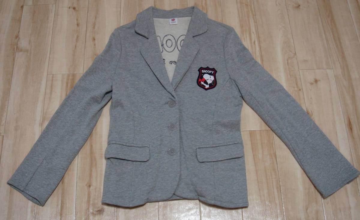 USJ スヌーピー テーラード ジャケット Smoo-chu ◆ SNOOPY ユニバーサルスタジオジャパン ブレザー グレー コットン100% Mサイズ ◆ USED