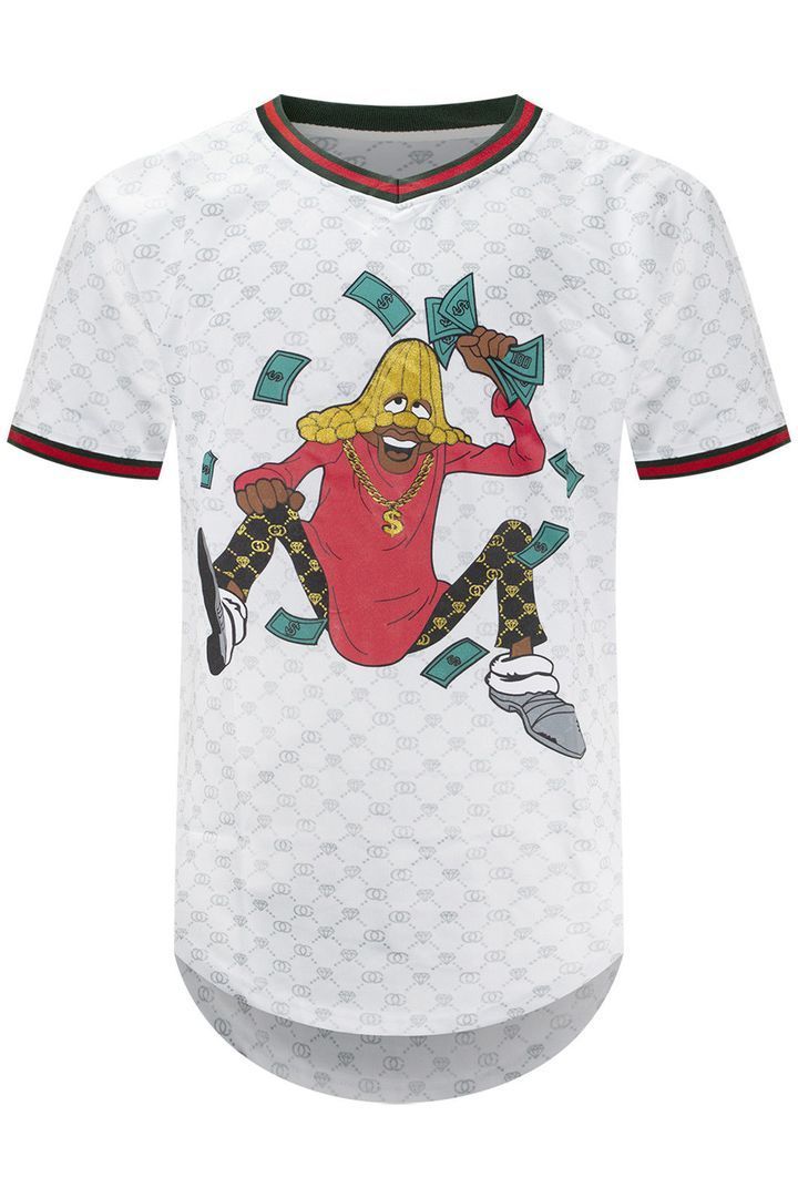 日本未入荷 【XL】 MAXI MILIAN マキシミリアン 野球 ベースボールシャツ Vネック 総柄 ジャージ USA正規品 アメコミ 白 ホワイト HIPHOP