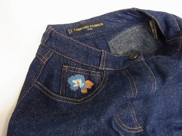 ■■レオナール★シルク花刺繍デニムショートパンツ63/90■■