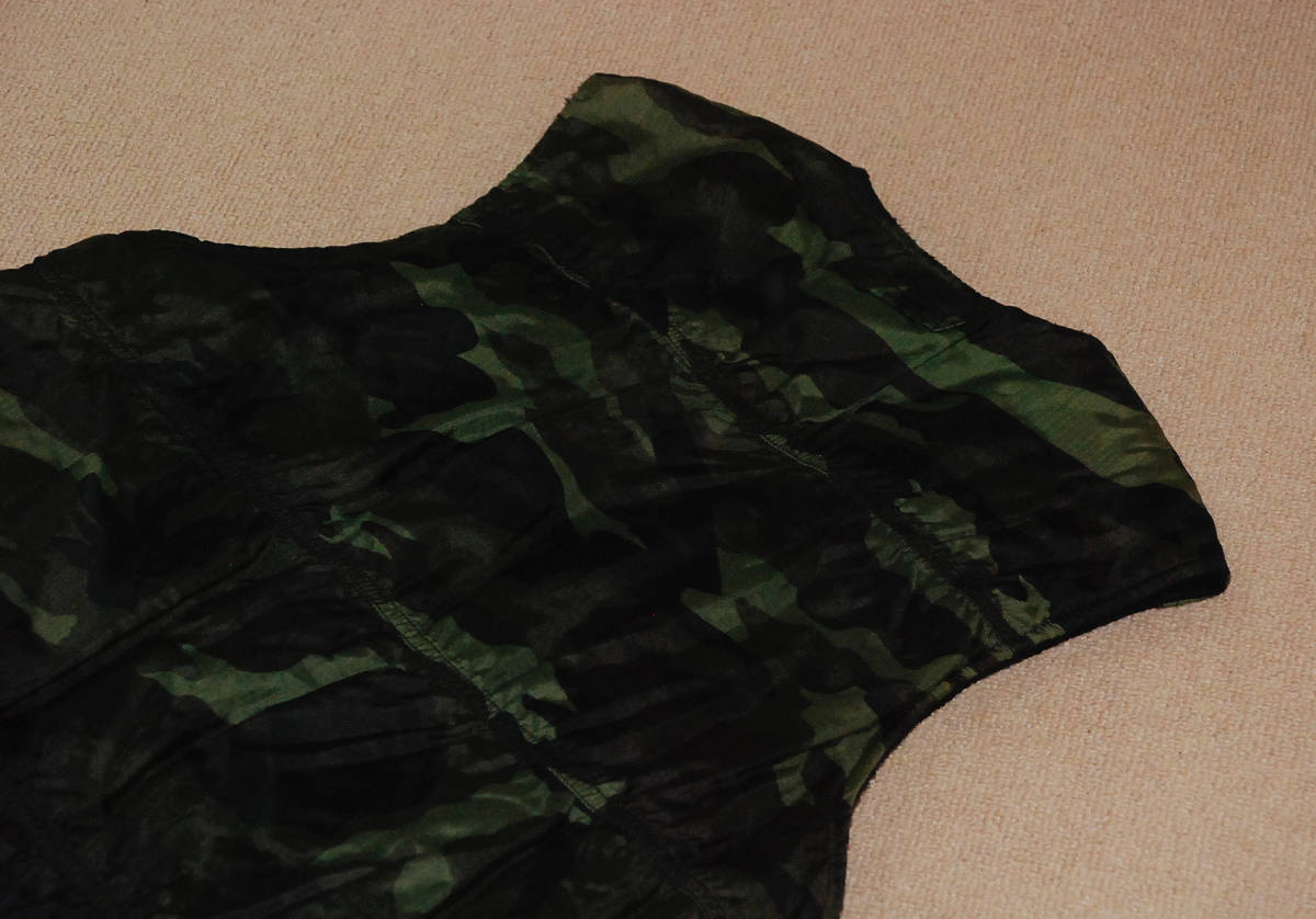 ★サバイバルゲーム的カモフラ迷彩裏起毛ボア付ベスト/カーキカモフラージュ柄/サイズL/店頭展示処分品