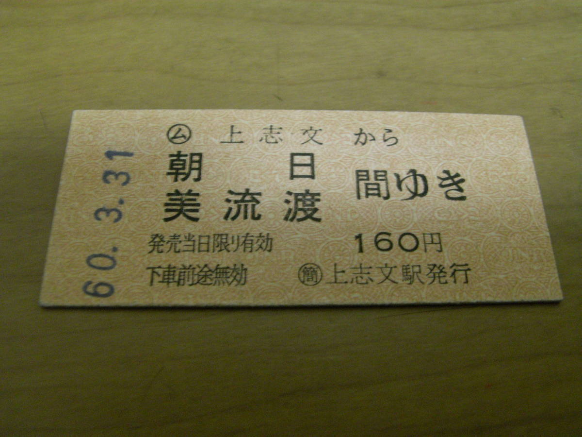 2枚/万字線 上志文から朝日 美流渡 間ゆき 昭和60年3月31日 簡 上志文駅発行 大小2枚 ●最終日