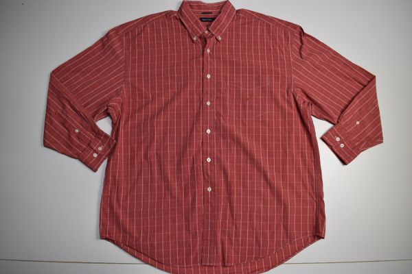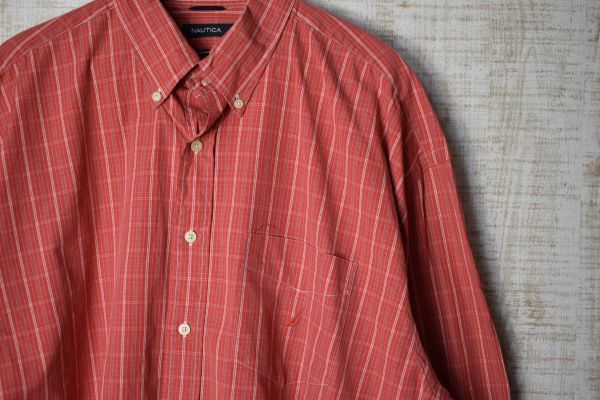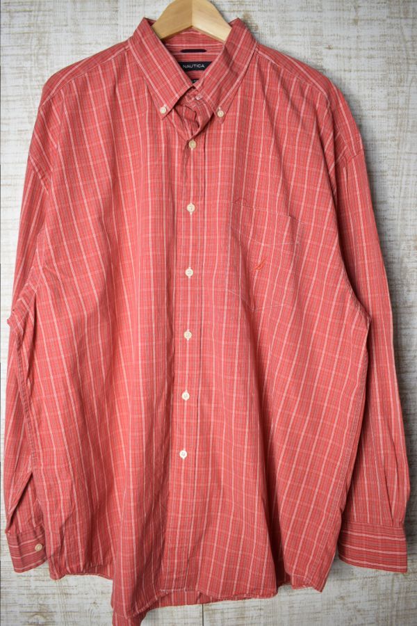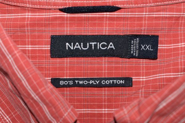 ●US USED NAUTICA ノーティカ 綿 コットン シャツ チェック レッド赤【M】