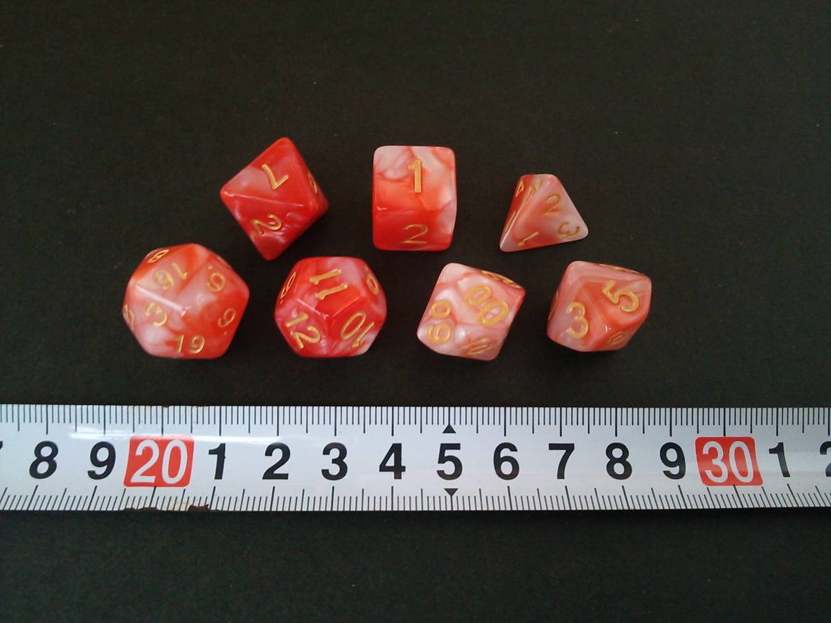 ・ボードゲーム用のサイコロを7個(4面・6面・8面・10面・10面・12面・20面)です。