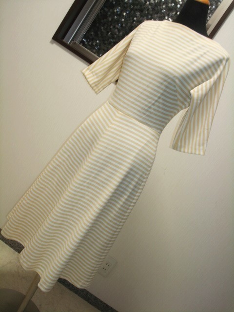 配送方法に【ゆうパック、宅急便、定形外の特定記録付き】をご希望の場合は 送料を改めてお知らせ致しますので、【お支払い前】にご希望をお知らせください。 同梱、複数まとめて購入ですと1回分の送料となりお得になります。 この機会にぜひ見て頂けましたらうれしいです(^^) ■ブランドメーカー■ ナチュラルビューティ 日本製 ボーダーでしっかりした素材の5分袖ほどの ロング丈ワンピースです。 丈長め、ラグラン袖でラインも可愛いデザインで 白ベージュで上品さもあり お使い頂きやすいお品です(^^) ■状態■ 数回使用品 特筆すべき気になる汚れや傷なく美品ですが あくまでも、USED,自宅保管につき神経質な方はお控下さい。 ■サイズ■ 記載 M 平置き 約 丈102×肩幅なし×身幅40~、ウエスト32cm