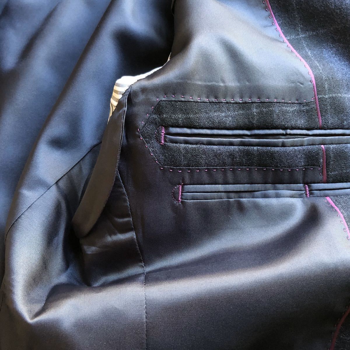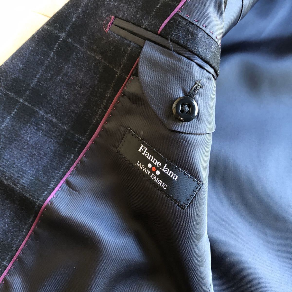 ・サイズ⇒Y6 ・各寸法⇒着丈73.5cm、肩幅46cm、袖丈62cm、脇下身幅52cm ※素人採寸となります、多少の誤差はお許し下さい。 ・表地⇒毛98%、ポリウレタン2% ・裏地(総裏)⇒ポリエステル ・色・柄⇒グレー系・タータンチェック ・ステッチ⇒あり ・ベント⇒センターベント ・袖ボタン⇒4個、キッス釦 ・台場⇒切台場 ・商品状態⇒新品(秋冬物) RB27445 | ||