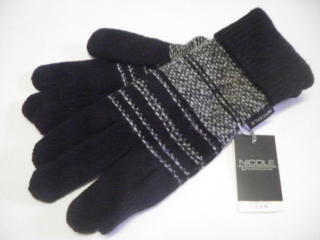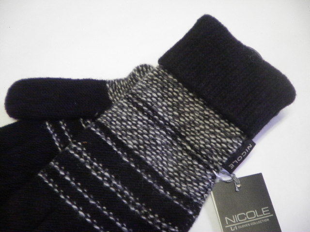 商品 情報 | ☆新品 ☆ロゴマーク付きです!!(モニター環境により色が写真と少し異なる場合があります) ☆カラー ブラック系に柄 ☆素材 ウール・ナイロン 日本製 ☆平置きサイズ *手首~中指の先 約 24cm *手首の幅 約 8cm ※参考程度に (測る場所により多少の誤差が生じます) ☆ブランド NICOLE ニコル (正規ライセンス商品) |