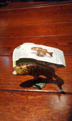 海洋堂から発売のカプセルQ日本の動物 外来生物の「コクチバス」になります。口をあけた姿がとてもリアルな出来栄えです。送料ですが普通定形外郵便(補償無し)で宜しければ140円となります。