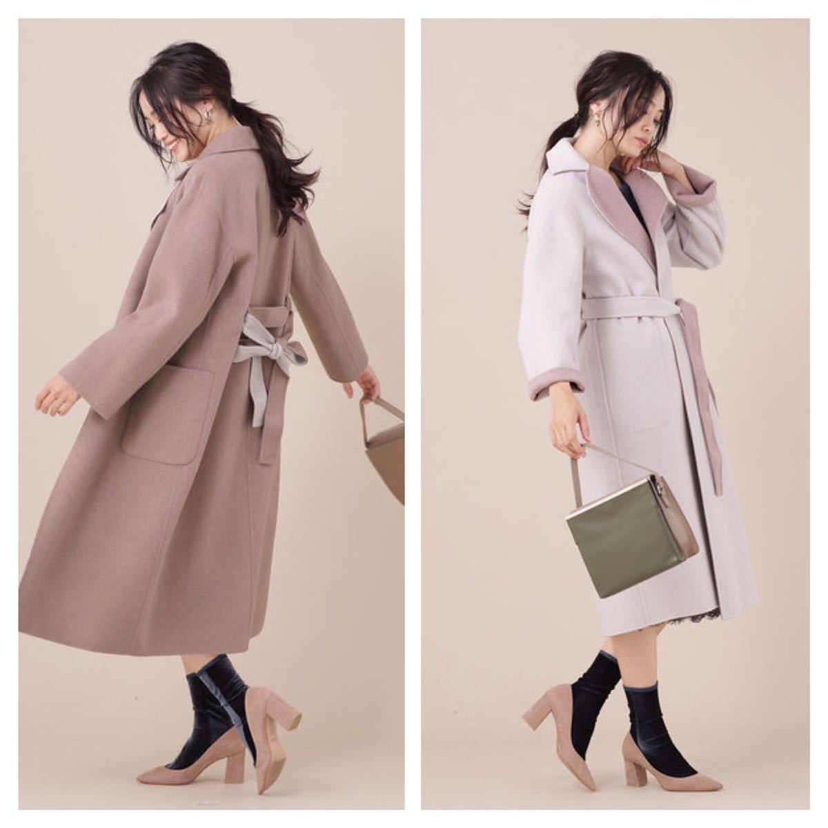 やや薄手の素材感で肌寒くなる晩秋から活躍してくれます。配色が印象的なラペルはトレンチコートを思わせるクラシカルな雰囲気。
