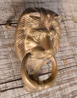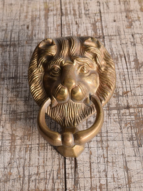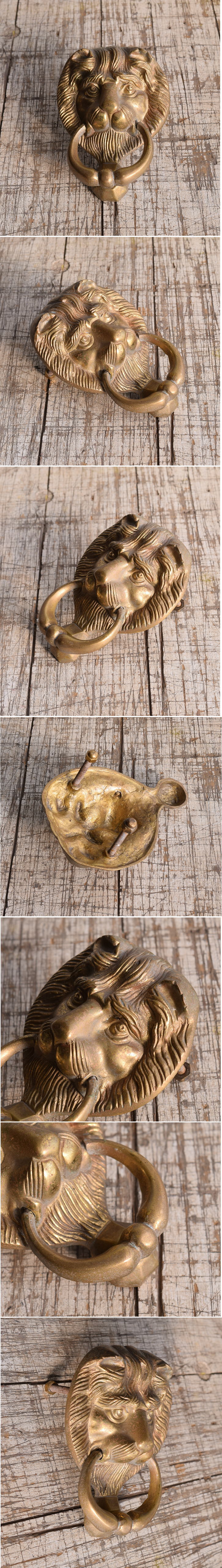 イギリス製の古い真鍮製のライオンヘッドドアノッカーです。 使いこまれた風合いがとても素敵です。 大きなダメージ無くコンディション良好です。 有効取り付け厚4.4cm迄